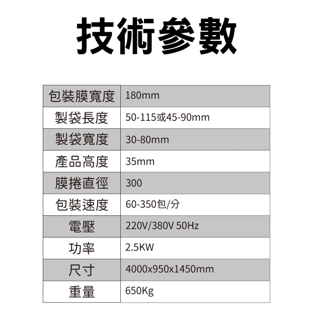 - Supports a wide range of bag sizes (length: 50-115mm or 45-90mm, width: 30-80mm), meeting diverse packaging requirements.